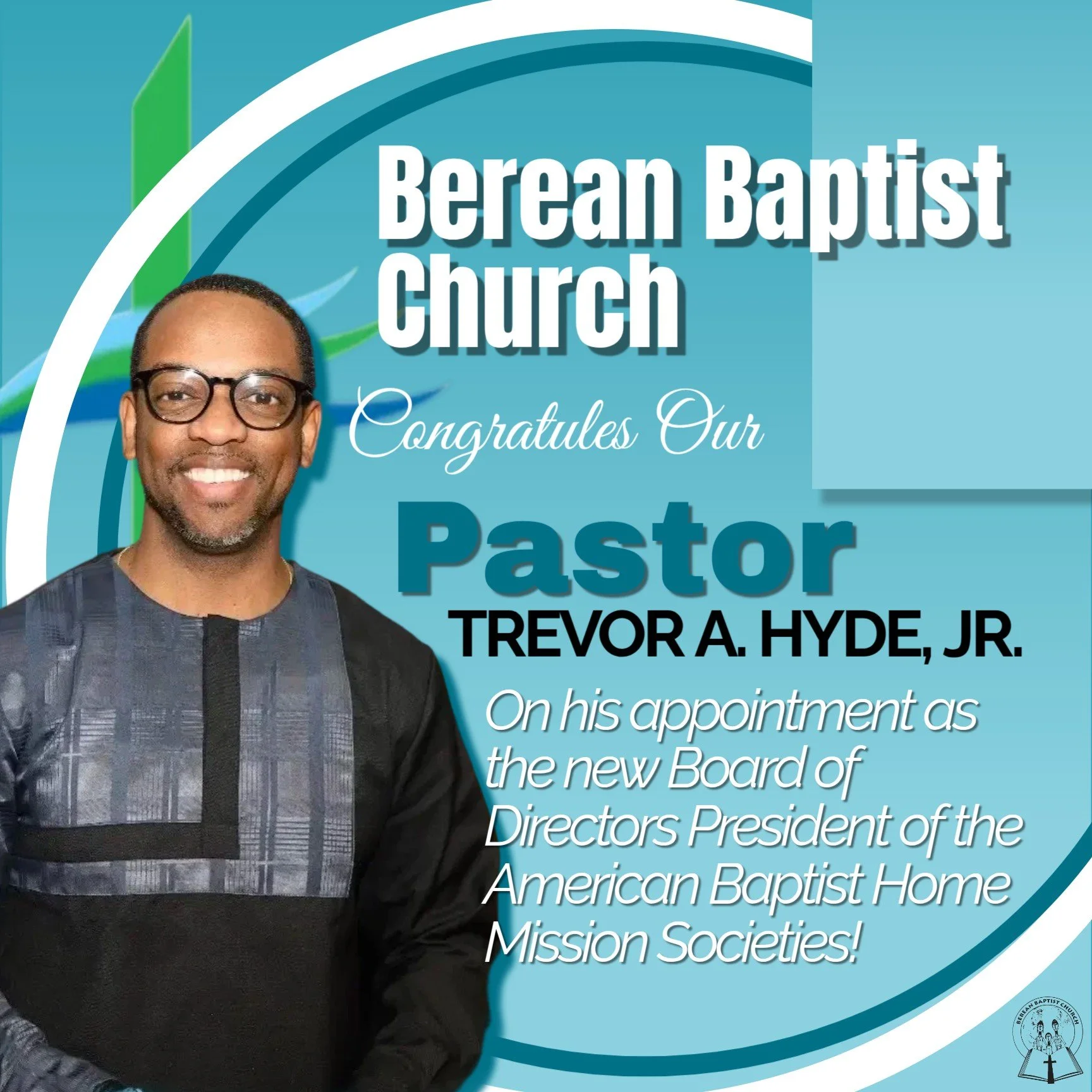 Berean Baptist Church is thrilled to celebrate our very own Pastor Trevor A. Hyde, Jr. on his new appointment as the Board of Directors President of the American Baptist Home Mission Societies!